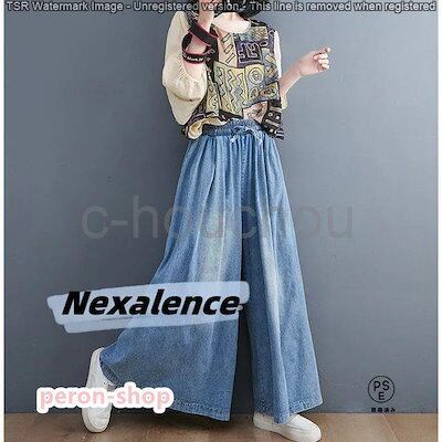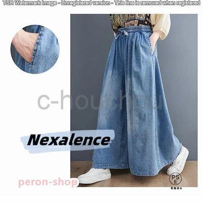 4月の新品ワイドパンツ デニムワイドパンツ ガウチョ デニムパンツ ゆったり スカーチョ パンツ 体型カバー 大きいサイズ レディース スカンツ ワイドルーズ 大人 ボトム