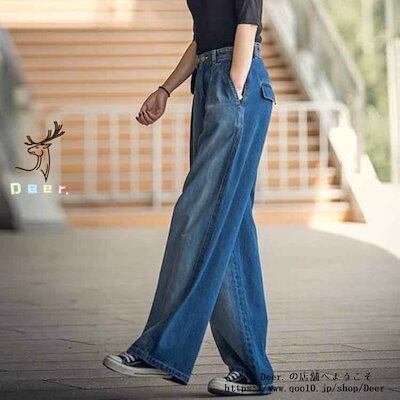 大きいサイズのの韓国版の新型ワイドパンツ レディース ワイドデニム デニムパンツ ワイドパンツ レディース ジーンズ ガウチョパ
