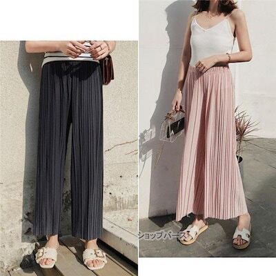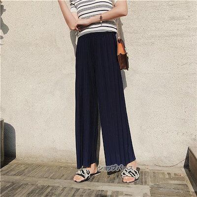 【新作セール】【即納 】ガウチョパンツレディース ワイドパンツ プリーツパンツ ウェストゴム ロング丈 春夏 無地 ゆったり かわいい きれいめ おしゃれ