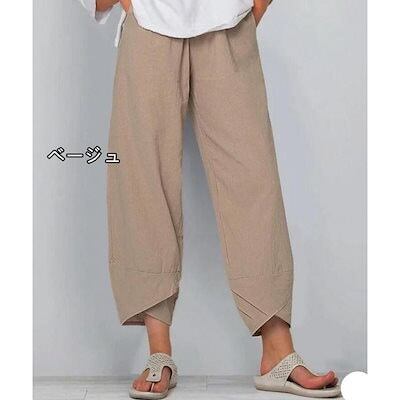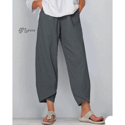 【GUANGYU】レディース ボトムス パンツ ガウチョパンツ 綿麻パンツ リネン風 九分丈 体型カバー カジュアルパンツ 綿混パンツ 無地 定番