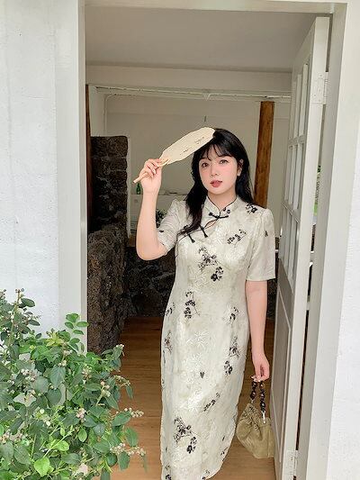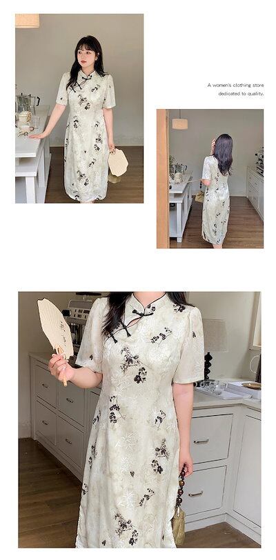 【ぽちゃまに】 夏 チャイナドレス 大きいサイズ 中華風 長/短2タイプ 体型カバー レトロ 柄ワンピース レディース ロングワンピース メガ割 福袋 T