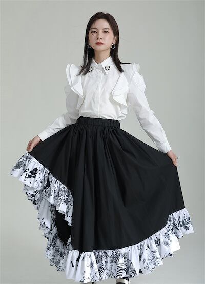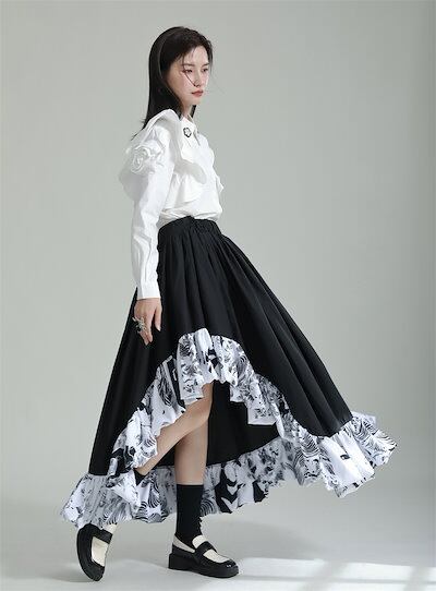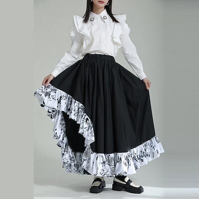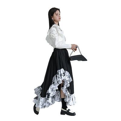 【J.Fashion】 裾飾り 花柄 ドッキング スカート プリーツスカート ゴムウエスト マーメイドスカート レディーススカート ロングスカート メガ割 福袋 T