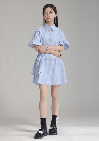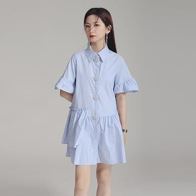 【J.Fashion】 ショートワンピ フリル シャツワンピ 可愛い 夏 レディースワンピース 関連商品は店で購入可能 福袋 T