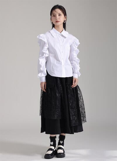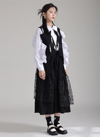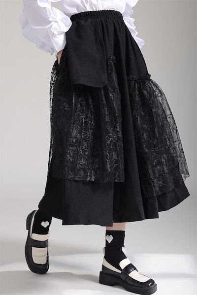 【J.Fashion】 春 レースドッキング ロングスカート ゴムウエスト メッシュ レディース おしゃれ 関連商品は店で購入可能 メガ割 福袋 T