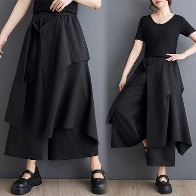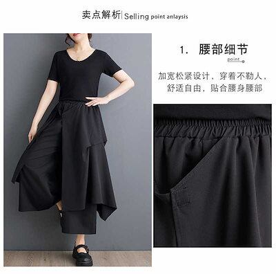 「ファットガール」 2025夏 ワイドパンツ 大きいサイズ ニセ2セット レディース 体型カバー パンツ 福袋 T