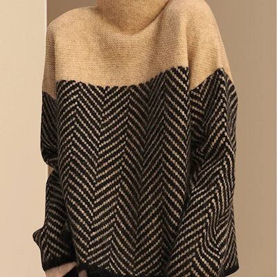 ニットセーター ハイネック パッチワーク アウター ニットカーディガン ニット セーター 長袖 レディース インナー 大きいサイズ アンダーウェア ハイネック カシミヤタッチ 人気なリブニット 福袋