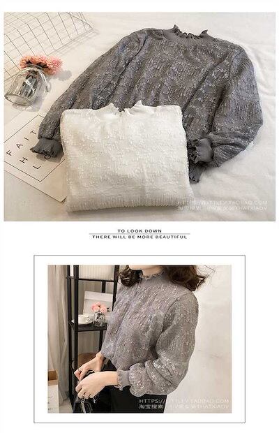 Tシャツカットソー 2025/春/夏/新作/韓国バージョン/大きいサイズ/かぎ針編み/レースシャツ/レディース/木耳/ハーフハイネック/上下シャツ 福袋 T