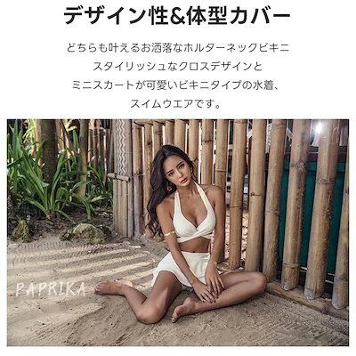 水着 盛れる ビキニ スカート セクシー レディース 温泉水着 クロスデザイン 2点セット みずぎ パッド付き ワイヤー入り 小胸 谷間 ホルターネック 美バスト カシュクール スイムウエア ショート