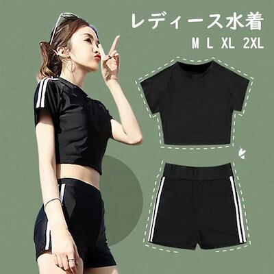 タンキニ水着 レディース 2点セット フリル ストライプ 半袖 ワイヤーなし パッド付 ラウンドネック 着?せ シンプル セクシー 写真映え 撮影用 海 夏 サマー プール リゾート かわいい 旅行