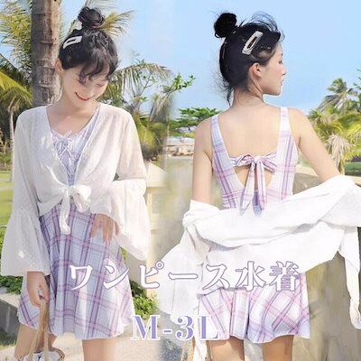 ワンピース水着 水着 3点セット リボン トップス付き ワイヤーなし パッド付 チェック柄 レディース シンプル セクシー 写真映え 撮影用 海 夏 サマー プール リゾート かわいい 旅行 温泉 大 | Jeannede ジャンヌデ
