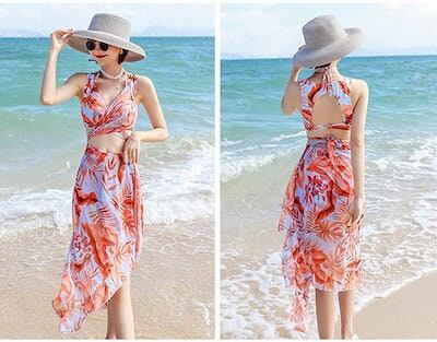 3点セット 水着 パレオ付き レディース 体型カバー タンキニ水着 パレオ付き 2L 3L セクシー ビキニ 個性 ワイヤー入り 上下セット 盛れる 小胸もピッタリ 大人かわいい パッド入り スイミン