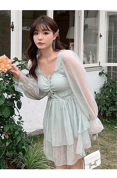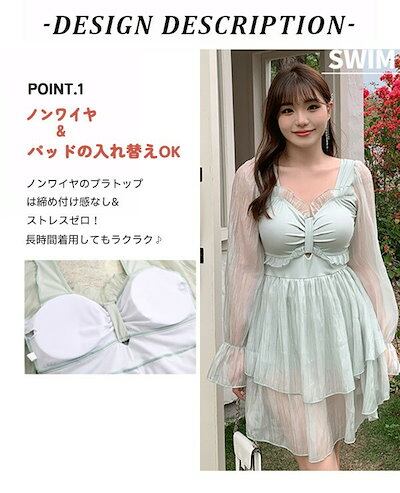 水着 レディース ワンピース 体型カバー 透け感 シアー感 ワイヤーなし 長袖 露出控えめ 大きいサイズ 着やせ ブラック グリーン ぽっちゃり 女性 スポーツ水着 海水浴 温泉 bi174zezez