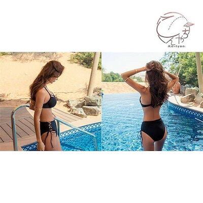 大人気 ビキニ 水着 レディース ビキニ セパレート 2点セット レースアップ 黒 白 トレンド 無地 ワイヤービキニ