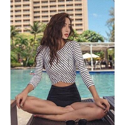 水着レディース水着2点セット七分袖ハーフトップ&ハイウエストパンツの2点パッド付きワイヤーありバスト寄せ盛りすっきりバストUP