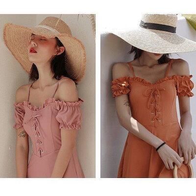水着セット 水着レディースワンピース体型カバーハイウエスオールインワンレースアップフリル可愛いエレガントフェミニンワイヤー入り無地単品新作
