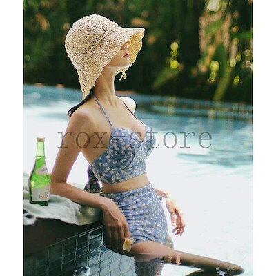 水着レディース水着2点セットビキニブラ&ショーツの2点パッド付きワイヤーあり胸寄せ盛りバストアップ谷間メイク