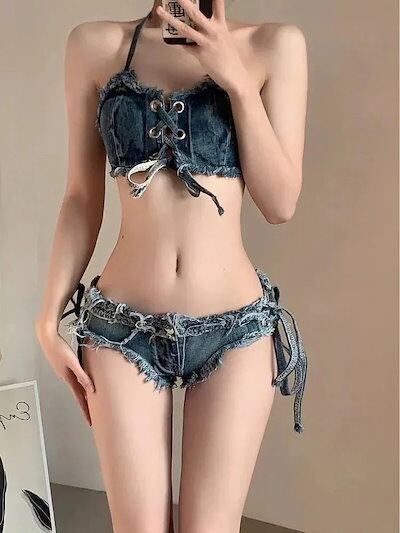 セパレート水着 大きいサイズ ビキニ セクシー 2点セット レトロ ワンピース ビキニ デニム 水着 水着レディース 女の子 水着 レディース 可愛い 大きいサイズ 大人用 水着 体型カバー ラッシ