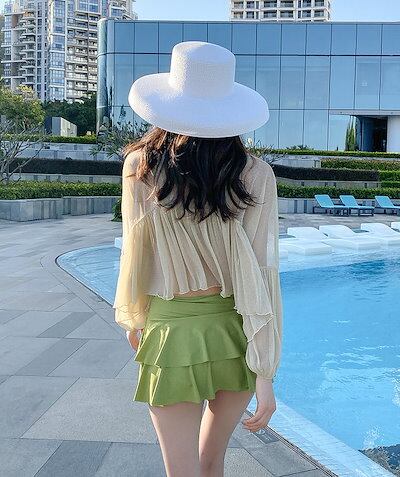 水着 体型カバー タンキニ 韓国 水着 レディース 小胸 緑 水着 セパレート 露出控えめ 大人 水着 体型カバー 可愛い 長袖 日焼け防止 海 プール 温泉 リゾート ビーチ
