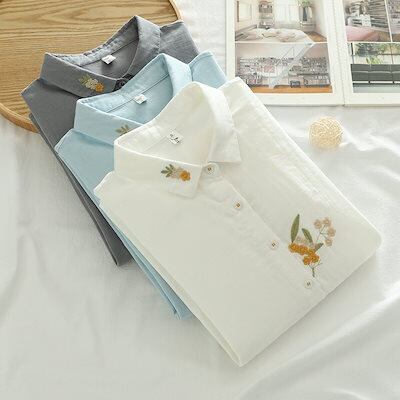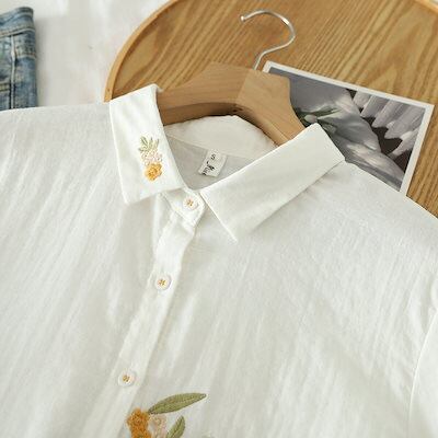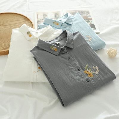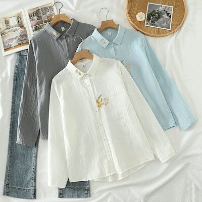 シャツブラウス レディース シャツ ブラウス 長袖 トップス 花柄 刺繍シャツ 秋 綿 カジュアル 秋 無地 大きいサイズ 体型カバー 柔軟 通勤 冬 春 シンプル ナチュラル 柔らかい ボタン 前開