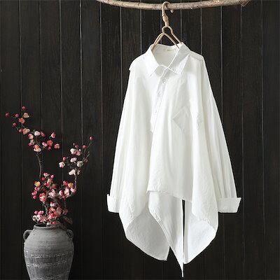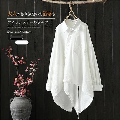 シャツ ブラウス レディース フィッシュテール 個性的 綿 トップス コットンブラウス ショート丈 長袖 綿 シャツブラウス 肌触り良い 前開き 着痩せ 可愛い ボタン付き きれいめ お洒落 通勤 大
