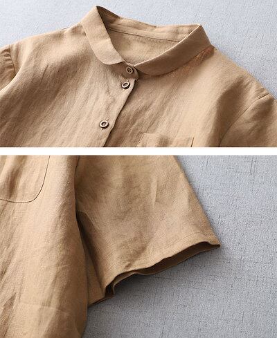 シャツ 半袖 綿麻シャツ ブラウス レディース 丸襟 夏 無地 ホワイト コットン 綿 柔らか シンプル 折り襟 ボタン留め 通気性 大きいサイズ 通勤 おしゃれ 大人 通学 ビジネス 春夏 可愛い