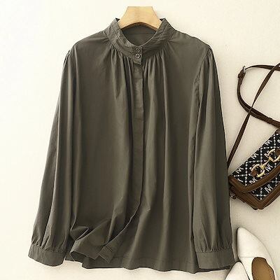 ブラウス 立ち襟 レディース シャツ トップス ハイネック スタンドカラー フォーマル 春 夏 秋 ギャザー 羽織り ボタン きれいめ 可愛い 長袖 コットン オフィス ゆったり カジュアル 入学式