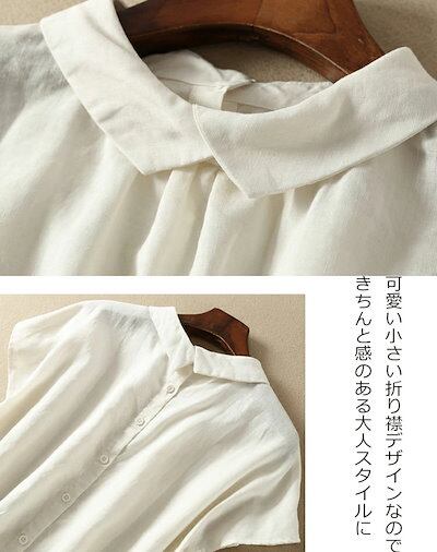 リネン シャツ ブラウス 可愛い 半袖 カジュアル シャツブラウス レディース 折り襟 綿麻シャツ 無地 シンプル ナチュラル リネンブラウス ゆったり リネンシャツ ギャザー 大きいサイズ ボタン