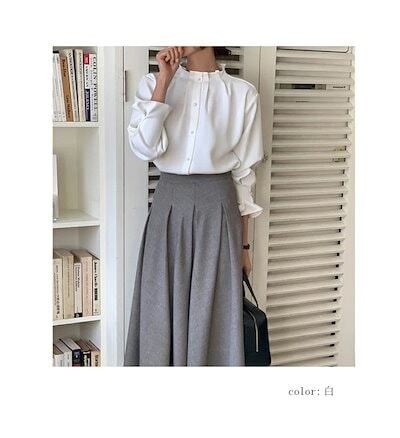 シャツ パール付き ブラウス フォーマル きれいめ 長袖シャツ レディース 春 夏 プチハイネック トップス シャツブラウス 通勤 OL オフィス 羽織り パールボタン 長袖トップス フェミニン