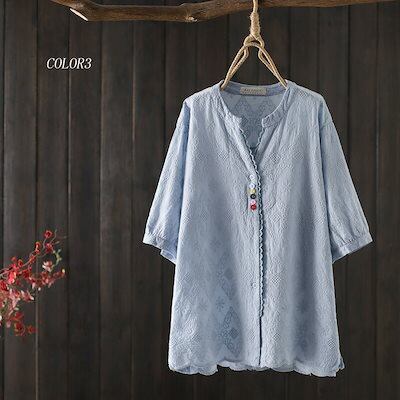 シャツ 綿シャツ ブラウス 無地 刺繍 半袖 ボタン留め 夏 レディース トップス 通勤 タック コットン 薄手 スキッパーカラー 20代 30代 オシャレ きれいめ ゆったり カジュアル