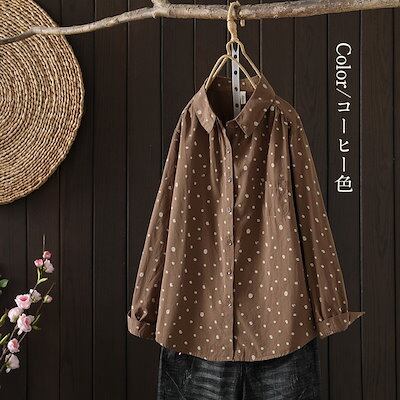 ドット柄 総柄 シャツ 長袖 レディース 襟付き きれいめ フリル 綿 コットン 羽織る 羽織れる トップス レギュラーカラー シャツブラウス ボタン 前開き 柄 ギャザー 体型カバー ゆったり ライ