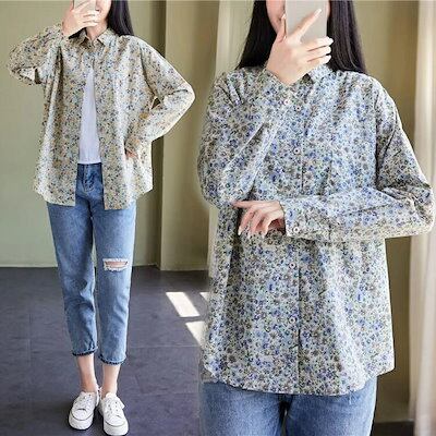 花柄 シャツ 綿 レディース 長袖 花柄シャツ 春 秋 折り襟 長袖シャツ 全開 フラワー 綿シャツ プリント カシュクール トップス 夏 ボタン 前開き 羽織り 羽織 羽織りもの カーディガン カジ