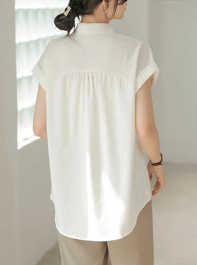 半袖 シャツ ブラウス レディース シャツブラウス 半袖ブラウス 半袖シャツ トップス 半袖トップス ピンタック タック チュニック 夏 折り襟 ゆったり 前開き ボタン留め 白シャツ ホワイト きれ