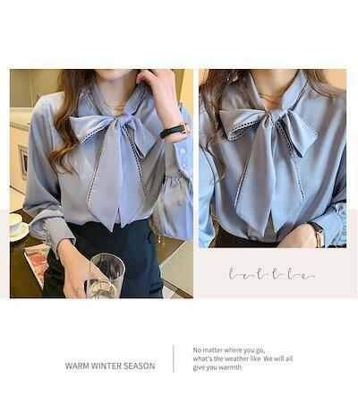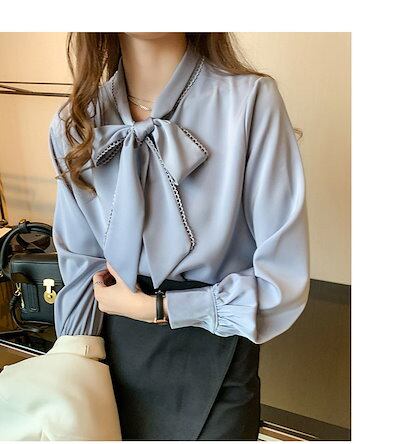 シャツ レディース 長袖 トップス ブラウス リボン付き シフォン おしゃれ ボタン留め コーデ 着まわせる 無地 上品 オフィス 事務所 通勤 OL