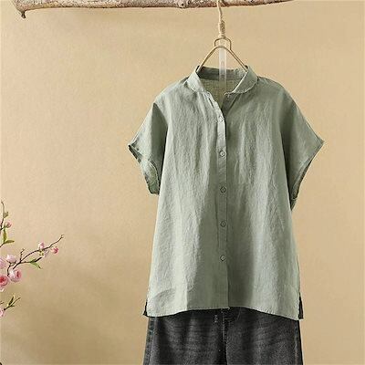 綿シャツ レディース シャツ 半袖 フレンチスリーブ 夏 おしゃれ 白シャツ シャツブラウス とろみ ドルマンスリーブ ドロップショルダ 前開け ボタン止め 折り襟 開襟 コットン 夏シャツ トップス