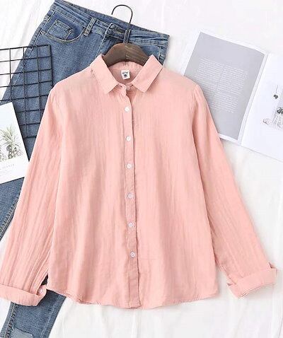 ダブルガーゼ シャツ ブラウス レディース ガーゼ 長袖 カシュクール 綿 長袖シャツ 折り襟 ボタン留め アウター ライトアウター 薄手 無地 カジュアルシャツ ゆったり トップス コットン シンプ | Jeannede ジャンヌデ