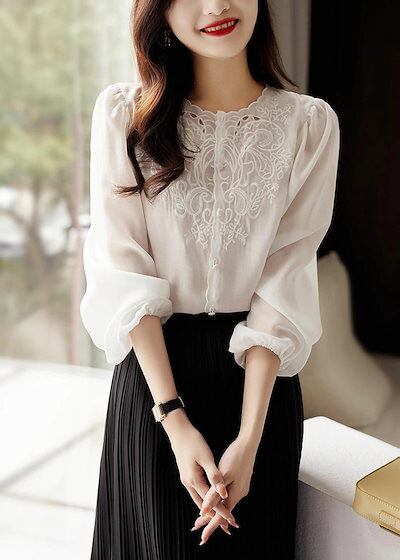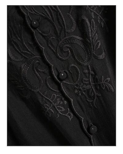 刺繍 ブラウス 長袖 レディース シャツ トップス フリル襟 シャツブラウス ノーカラー バルーンスリーブ ゆったり 前開き ボタン おしゃれ 薄手 長袖tシャツ 羽織り 羽織る 春 夏 秋 30代 | Jeannede ジャンヌデ