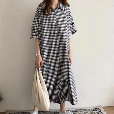 シャツ ロングシャツ レディース シャツワンピース トップス シャツワンピ 半袖 チェック ワンピース ボタン付き 白 ホワイト ブラック 大きめ 体型おバー おしゃれ ゆったり 大きいサイズ