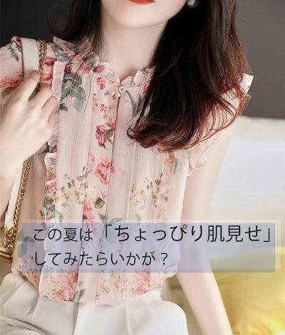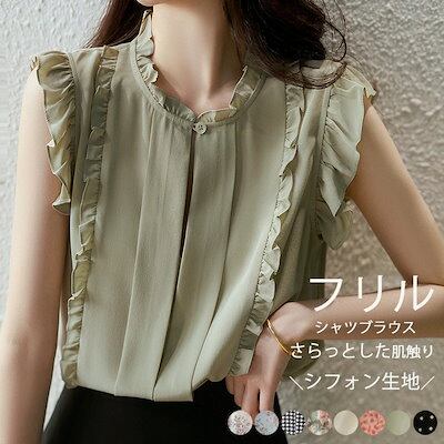 【春夏人気】シャツ シフォン 夏 ノースリーブ レディース プルオーバー フリル 夏シャツ ボタン タックシャツ 水玉柄 プリント ドッキング トップス 白 花柄 袖なし シャツブラウス 薄手 プリン