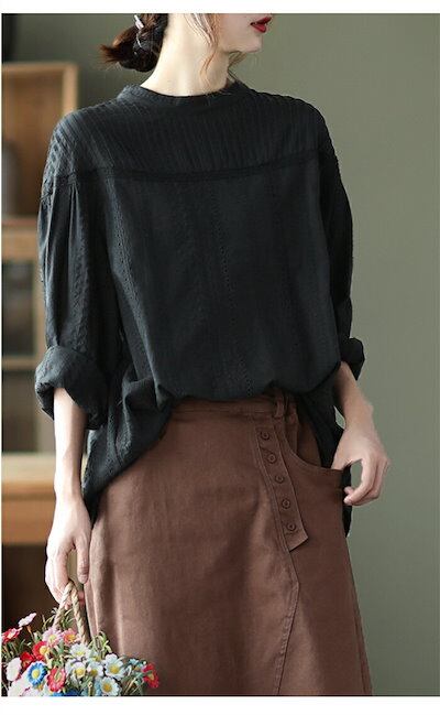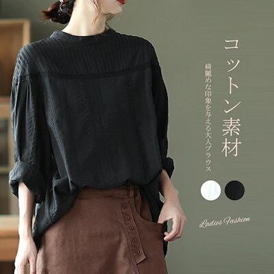 ブラウス レディース シャツブラウス 綿ブラウス 透かし編み 長袖 プルオーバー 長袖ブラウス バックボタン 綿100% ゆったり クルーネック 薄手 春 秋 日焼け止め トップス コットンシャツ コ