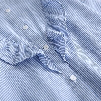 シャツ 長袖シャツ レディース 春 ストライプ シャツブラウス 長袖 きれいめ フリル 綿 コットン 羽織る 白シャツ トップス バンドカラー 秋 ボタン 前開き ギャザー 体型カバー ゆったり