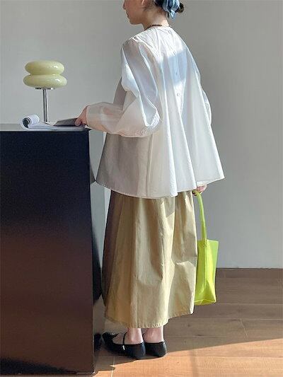 シャツ シャツブラウス バルーンスリーブ レディース チュニック バルーン袖 ブラウス 長袖 春夏 ホワイトシャツ 長袖ブラウス ボリェーム袖 無地 体型カバー エレガント グルーネック 後ボタン ア