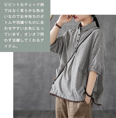 綿麻風 シャツ ブラウス レディース 半袖 シャツブラウス おしゃれ シャツ レディース シャツブラウス レディース 大きいサイズ チェック ゆったり トップス ボタン 綿麻調 裾レース切り替え レト