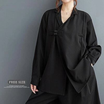 シャツ ブラウス レディース 長袖 秋 春 コットン チャイナボタン シャツブラウス 綿 トップス カジュアル 大きいサイズ 体型カバー ナチュラル おしゃれ 通勤 秋 冬 春 オフィス シンプル 着