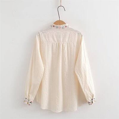 フリル襟 シャツ レディース 花柄 刺繍 綿 秋 春 チャイナボタン シャツブラウス 長袖 トップス 大人 可愛い 長袖ブラウス 長袖シャツ 森ガール カジュアル ナチュラル フェミニン 重ね着 イン