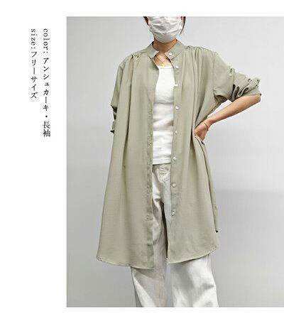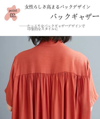 チュニック 半袖 シャツ レディース 夏 ロングシャツ 大きいサイズ ゆったり 体型カバー バンドカラーシャツ ロング丈 体型カバー シャツチュニック スタンドカラーシャツ ギャザー チュニ