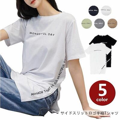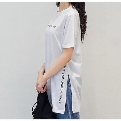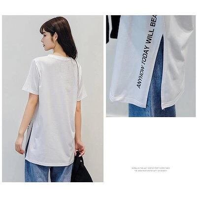 Tシャツ 半袖Tシャツ チュニック レディース スリット 製品気質 トップス ワンピース ロング丈 通気性がいい ゆったり 体型カバー サイドスリット ロゴ 夏服