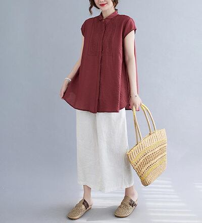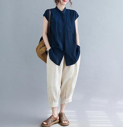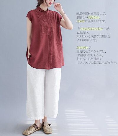シャツ フレンチスリーブ ブラウス レディース 夏 シャツブラウス 刺繍 チュニック トップス ミドル丈シャツ 夏 通気 夏シャツ 丸襟 折襟シャツ 無地 ゆったり 前開き シンプル 前後差 カジュア