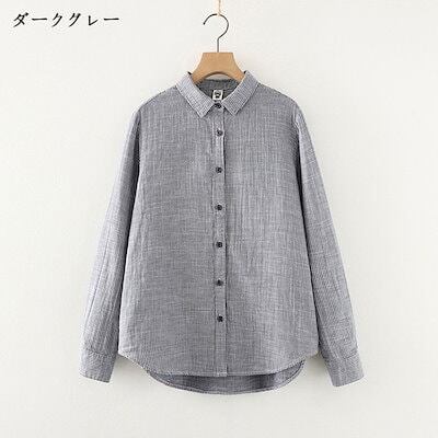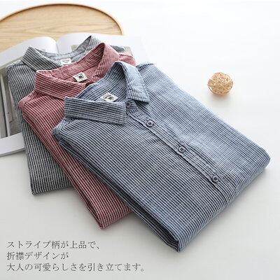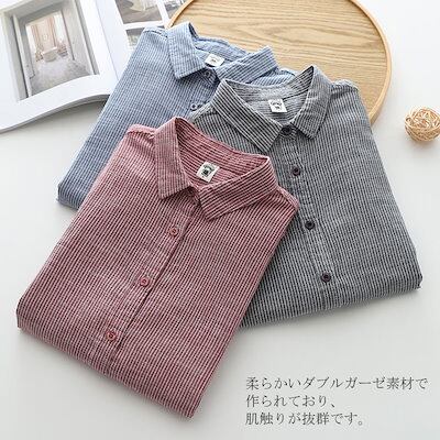ガーゼ シャツ 長袖 レディース 秋 ストライプ ガーゼシャツ ダブルガーゼブラウス 折襟 大きいサイズ シャツ チュニック 長そで 春夏 秋 体型カバー 綿 柔らかい コットン トップス ブラウス