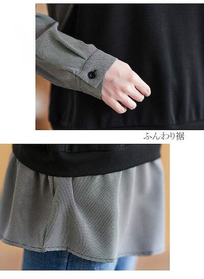 チェック柄 カシュクール シャツ レディース チュニック ブラウス 長袖 シャツブラウス 切り替え トップス 秋 薄手 ニットソー 折り襟 ボタン ふんわり ギャザー 切り替えトップス スタイルアップ