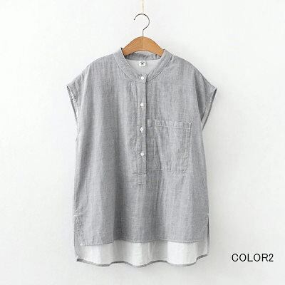 ガーゼシャツ ノースリーブ シャツ 夏 ダブルガーゼ レディース チュニックシャツ 大きいサイズ シャツブラウス 綿 プルオーバー トップス ブラウス サマー チェックシャツ スリット